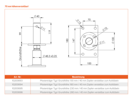 Gutzeit post bases type I for joinery systems, height-adjustable