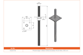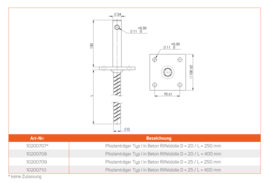 Gutzeit post base type U with tubular dowel, height and sideways adjustable for setting in concrete